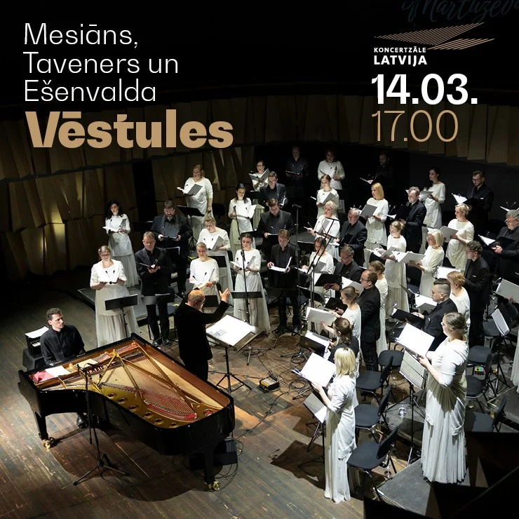 12. marts, 2026 Mesiāns, Taveners un Ešenvalda VĒSTULES | Reinis Zariņš, Māris Sirmais un koris LATVIJA Rīgas Latviešu biedrības nams 12. marts, 2026